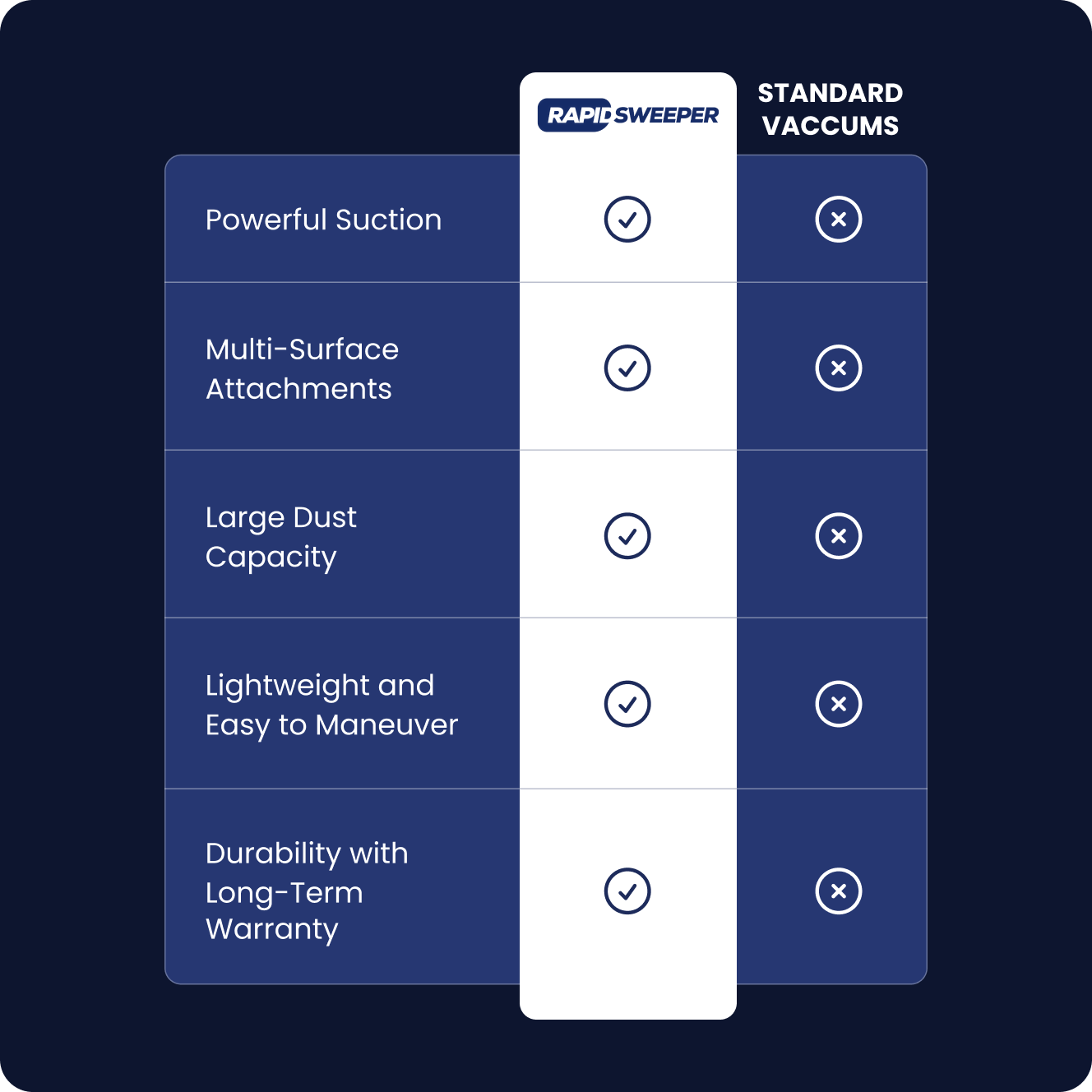 The Rapid Sweeper offers powerful suction, versatile tools, and effortless cleaning on any surface. Built for convenience and durability.